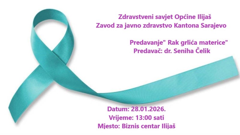 Zdravstveni savjet Općine Ilijaš u saradnji sa Zavodom za javno zdravstvo Kantona Sarajevo organizuje edukativno predavanje o temi “Karcinom grlića materice”.