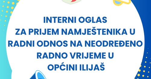 Link za cjelokupan tekst internog oglasa: Interni oglas za prijem namještenika u radni odnos na neodređeno vrijeme u Općini Ilijaš
