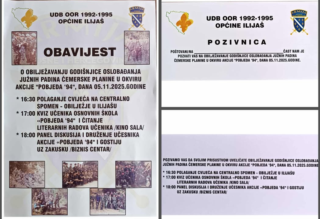 Udruženje demobilisanih boraca općine Ilijaš i ove godine organizuje obilježavanje godišnjice oslobađanja južnih padina Čemerske planine u okviru akcije „Pobjeda 94” u srijedu 5. novembra.