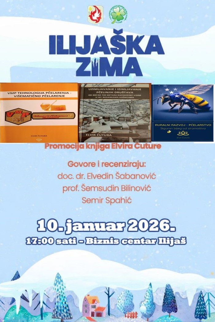 U okviru programa Ilijaške zime u subotu 10. januara 2026. godine sa početkom u 17 sati bit će održana promocija knjiga istaknutog pčelara i edukatora, našeg sugrađanina Elvira Čuture.