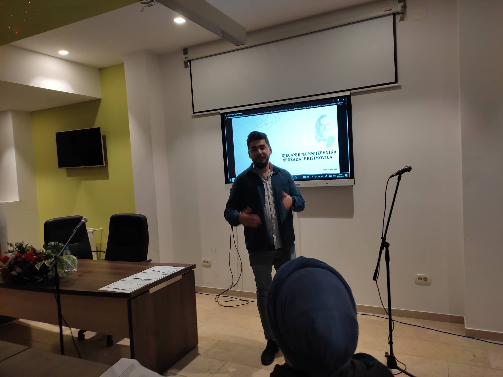 Elmir Spahić, viši asistent na Odsjeku za književnost naroda BiH Filozofskog fakulteta UNSA i urednik magazina za kulturu i društvo Biserje zahvalio se organizatorima i kazao da mu je čast govoriti o velikanu književnosti Nedžadu Ibrišimoviću.